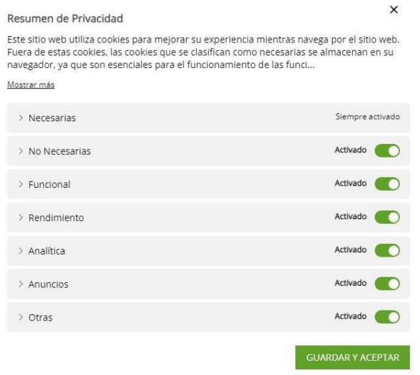 propia Política de Privacidad, como el detalle de su Política de Cookies.
